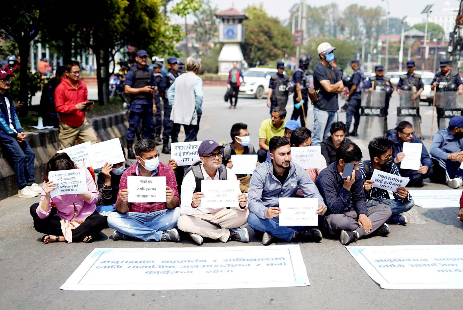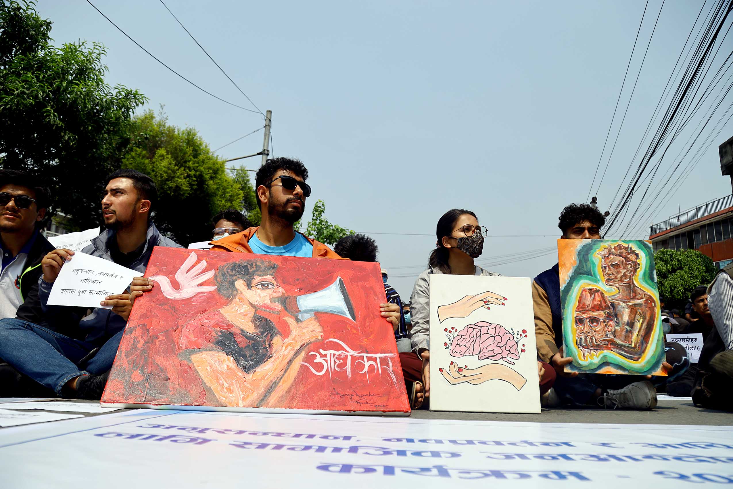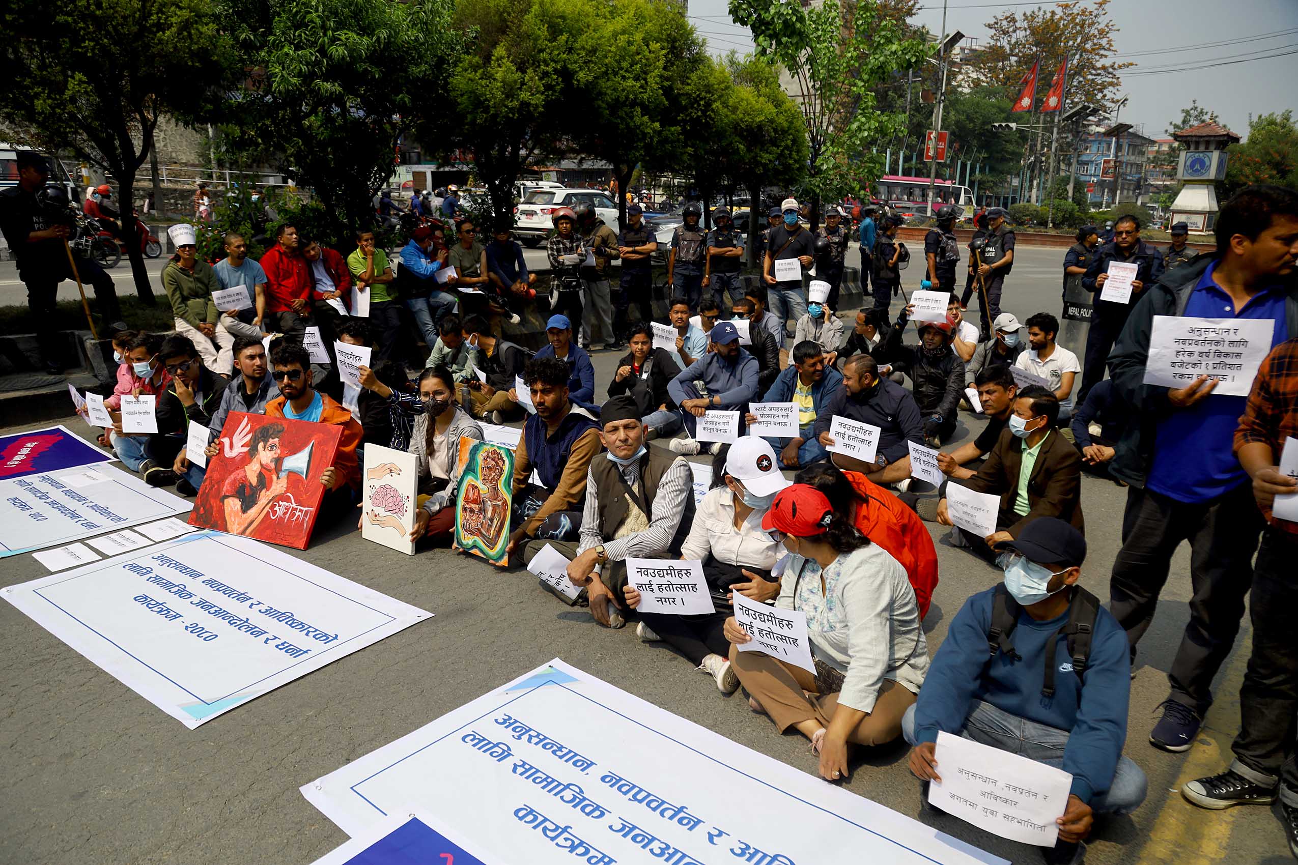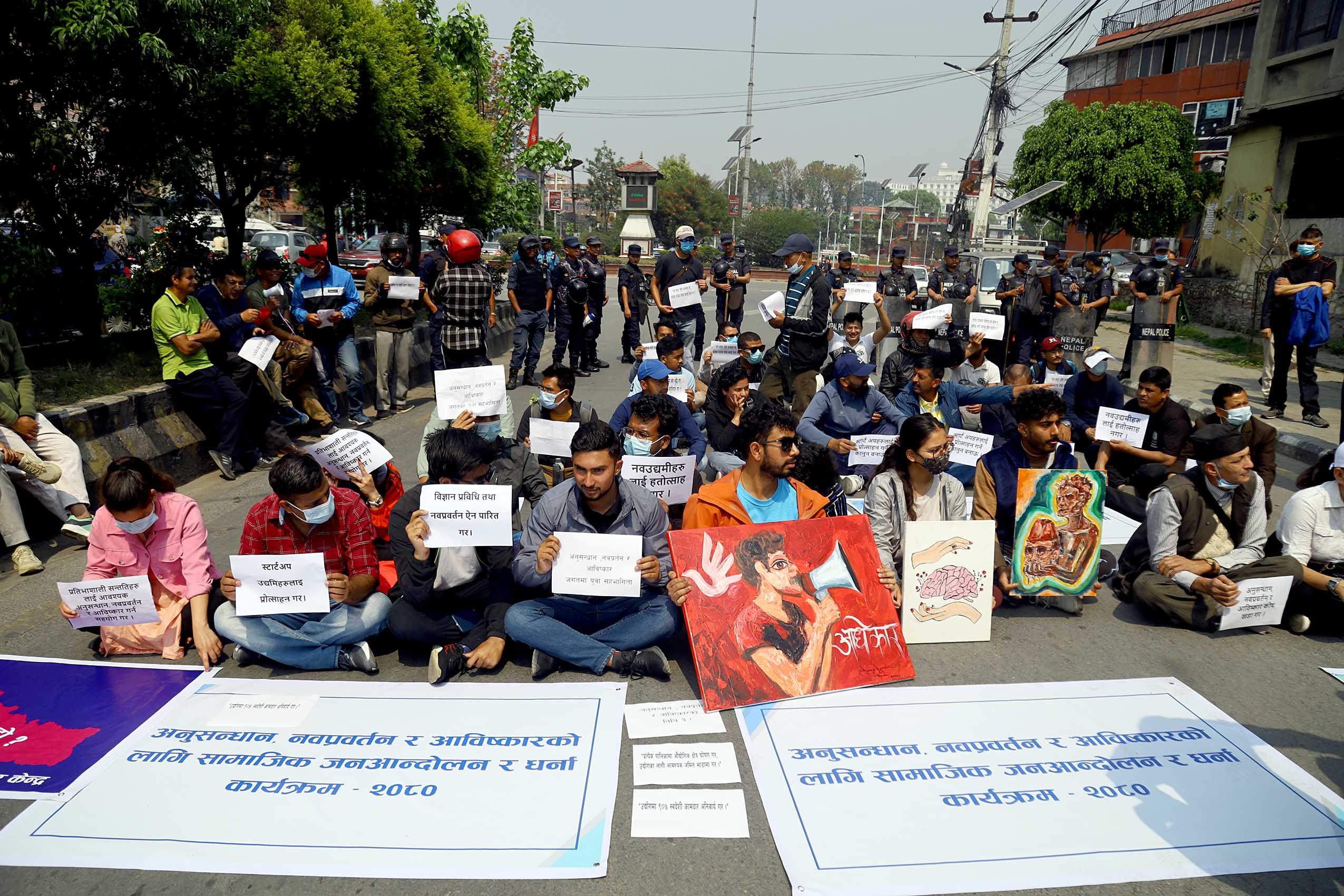आविष्कारका क्षेत्रमा काम गर्न माग गरिएका विभिन्न प्लेकार्ड बोकेका समर्थक सहित माइतीघरबाट नयाँबानेश्वर जाने सर्भिस लेनलाई बन्द गरेर धर्ना कार्यक्रम भैरहेको छ।